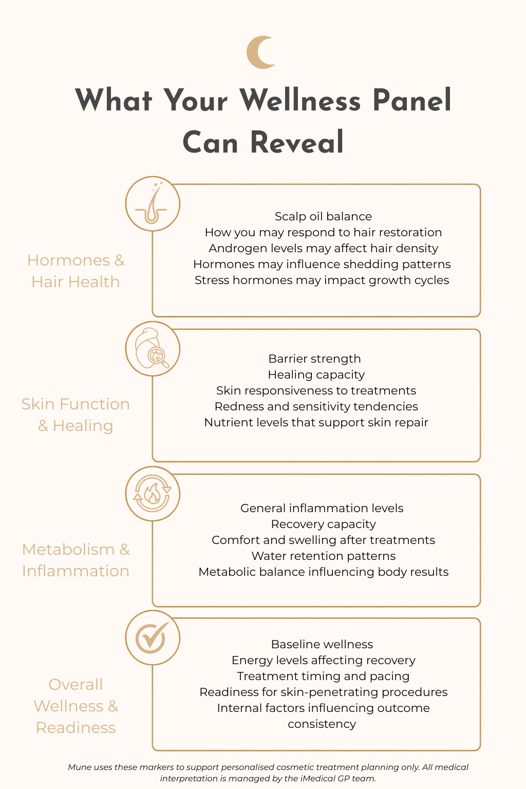 While medical findings are managed entirely by the iMedical GP team, these markers help us personalise your cosmetic plan safely and effectively.