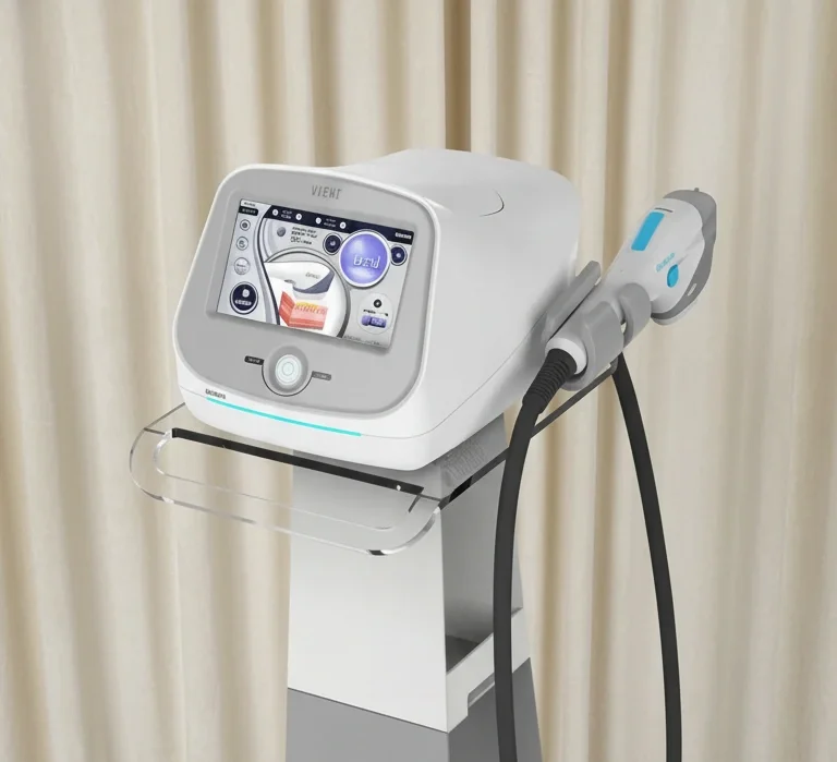 HIFU delivers focused ultrasound energy into the deeper structural layers of the skin, creating precise thermal points that stimulate collagen regeneration. This results in gradual tightening, lifting, and improved firmness over the following weeks and months.